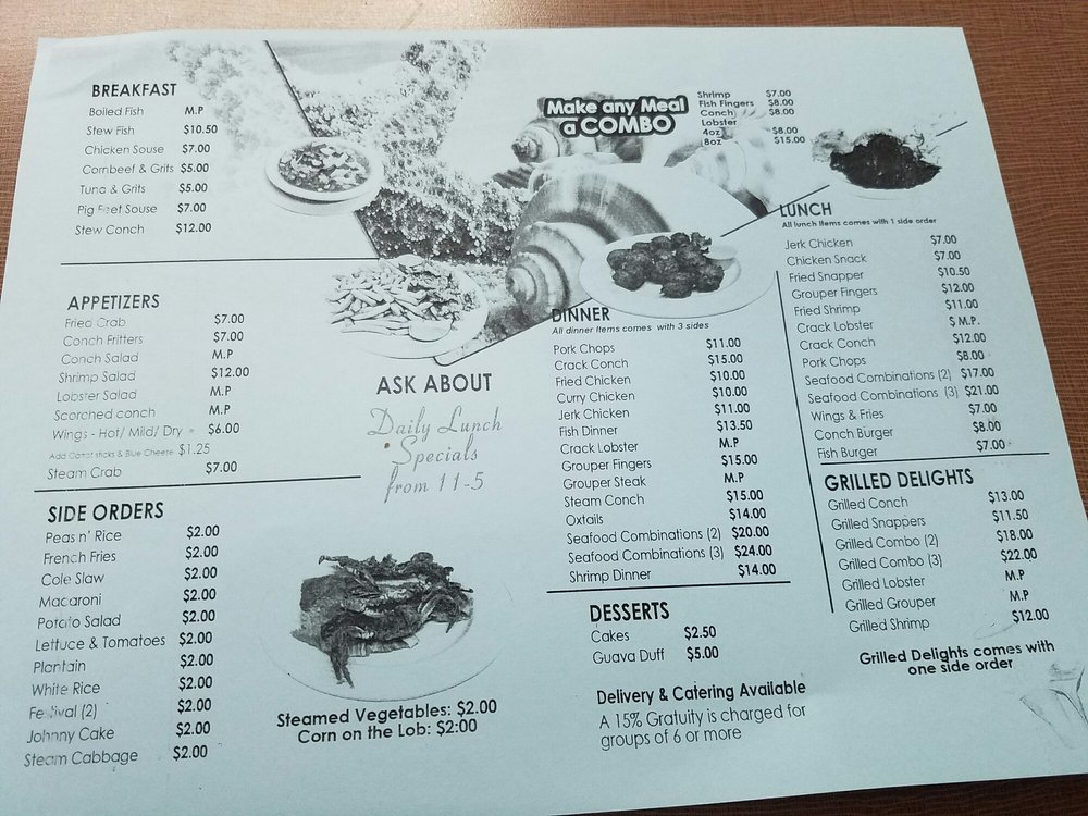 Conch Heaven, located in Miami, FL, offers a Caribbean seafood experience with a range of amenities like delivery, takeout, and catering services. Known for its fresh and flavorful dishes, customers rave about the conch salad, fried shrimp, and conch fritters. The menu also includes traditional favorites like tuna and grits for breakfast and boiled fish with grouper for lunch or dinner. The friendly staff and attentive service add to the overall dining experience. While some dishes like cracked conch received mixed reviews, the overall consensus is positive. If you're looking for a taste of the Caribbean in Miami, Conch Heaven is worth a visit.